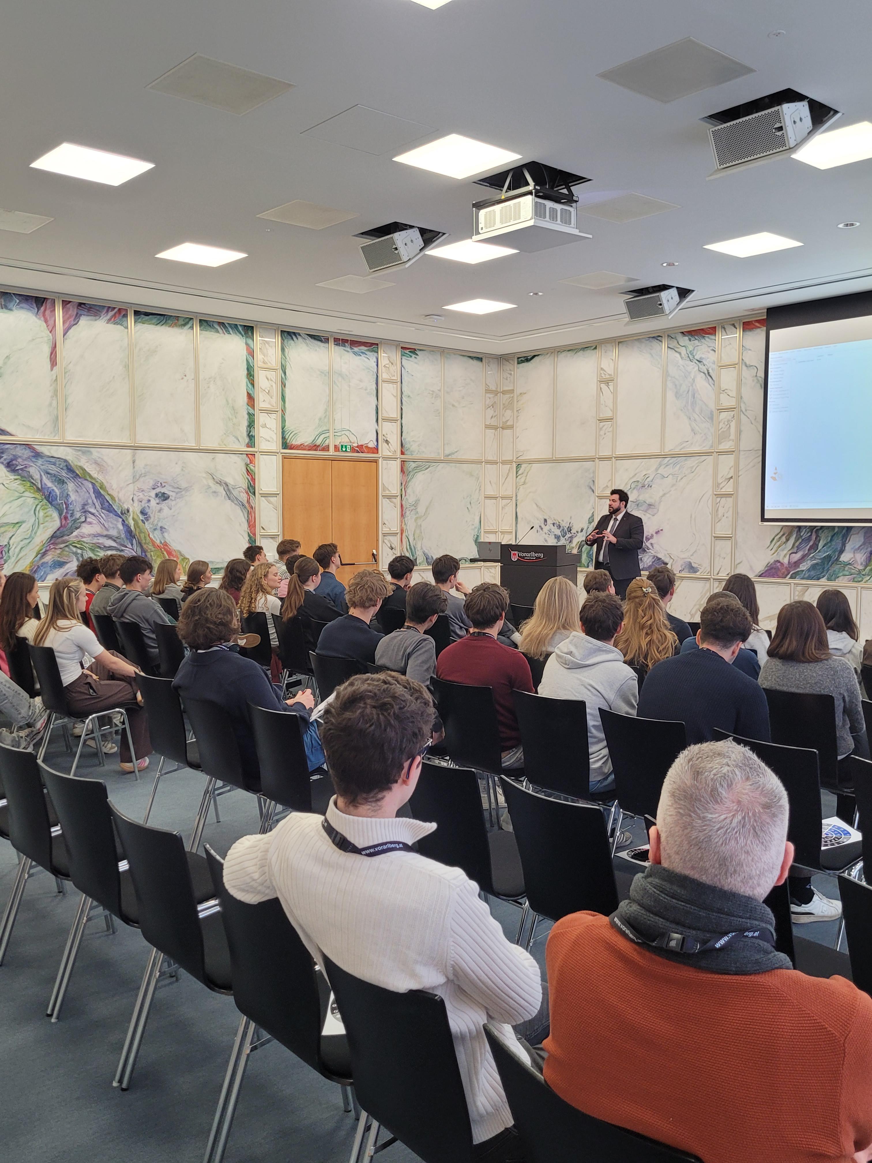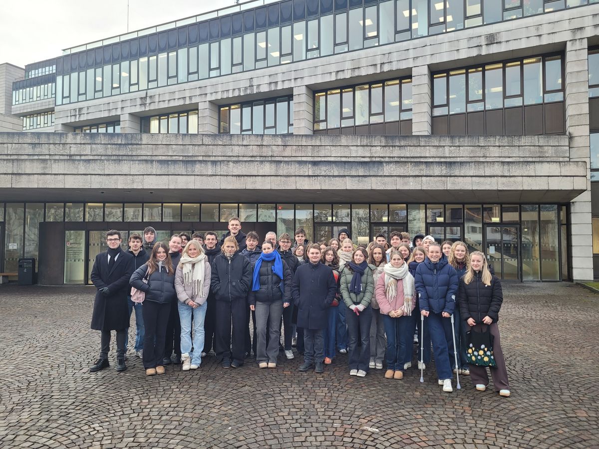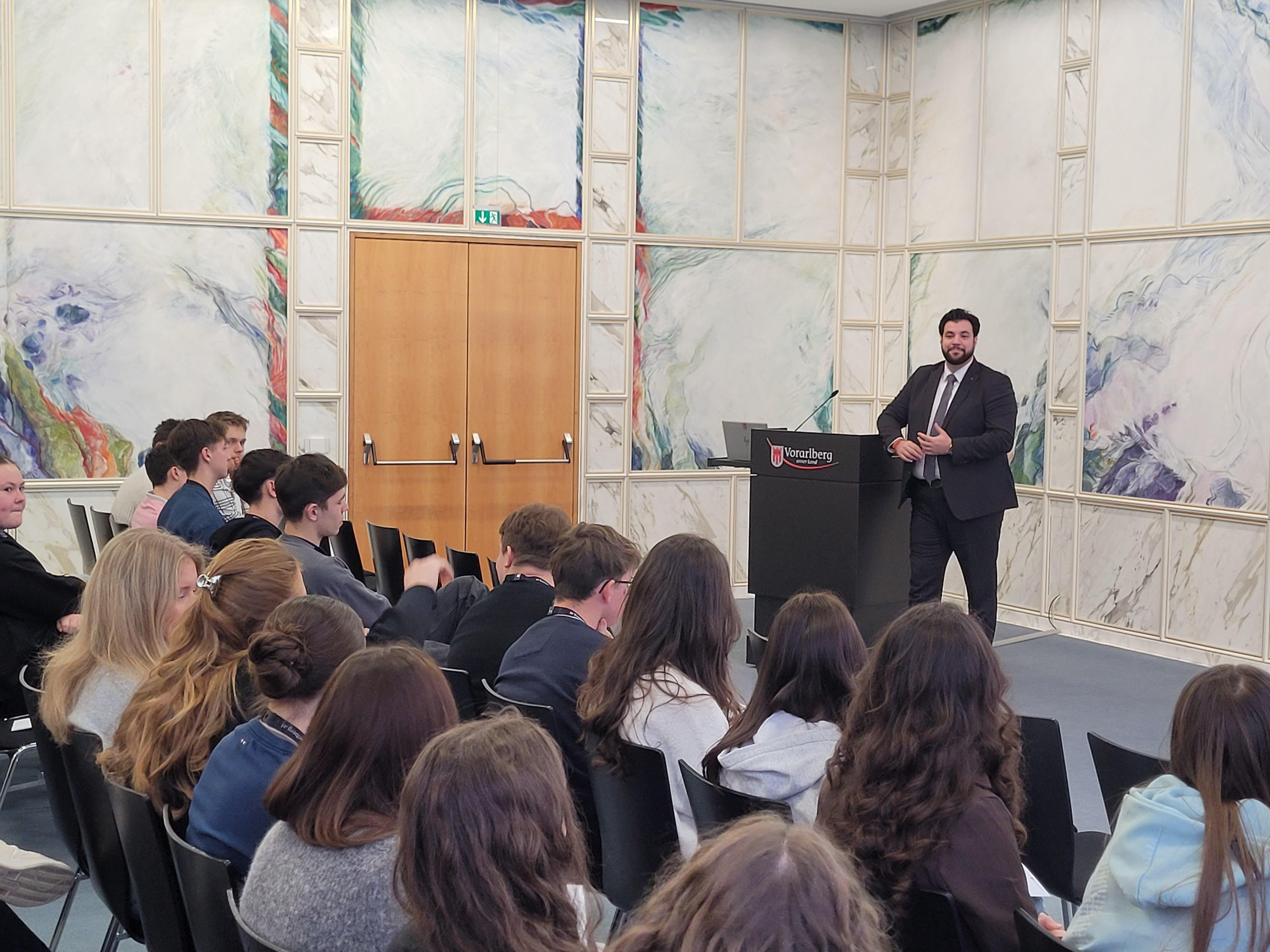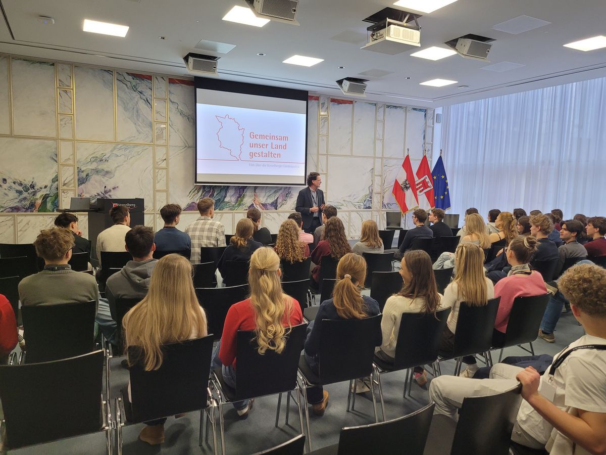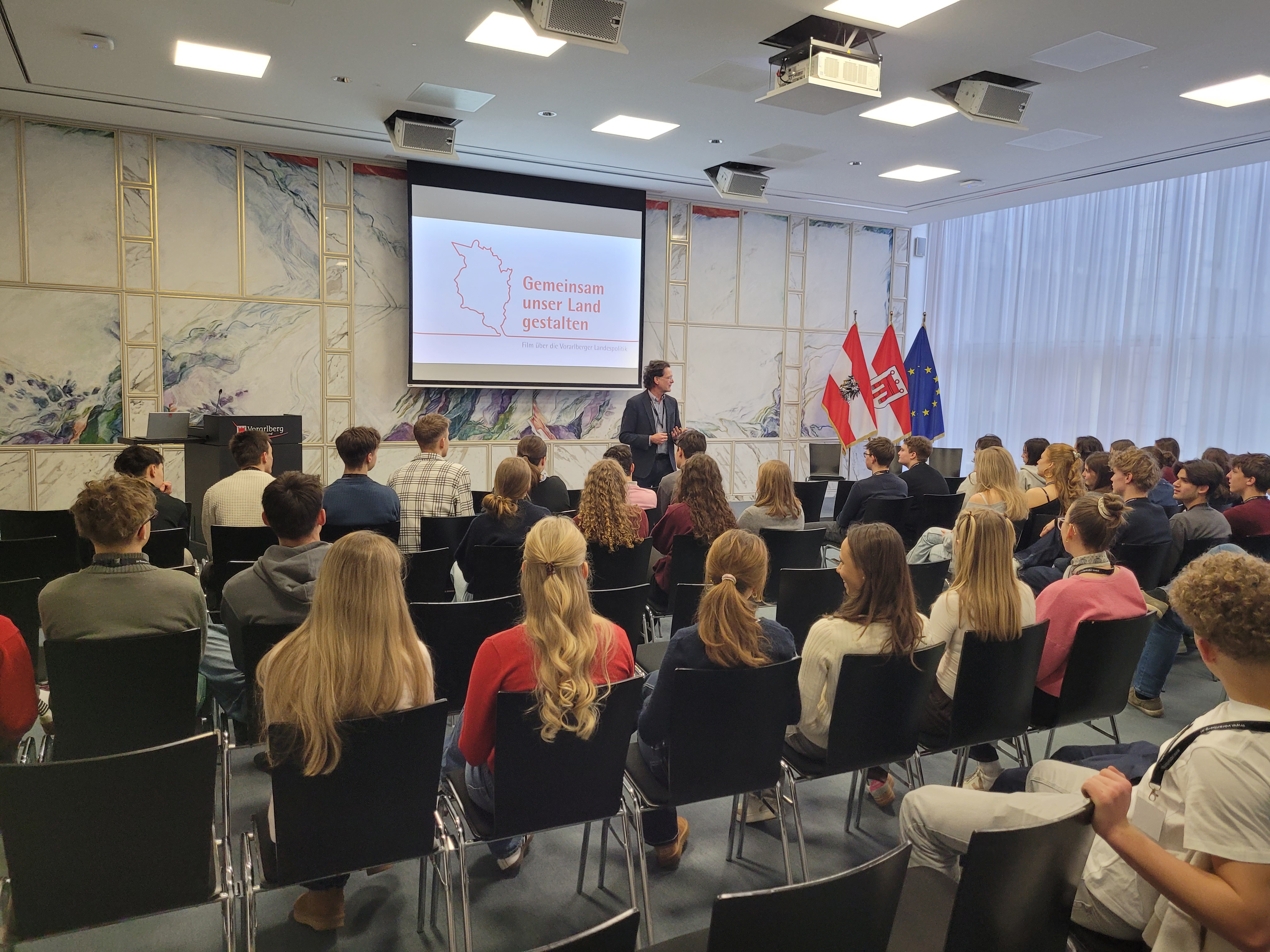 Am 4. Februar hatten unsere 8. Klassen in Begleitung ihrer GPB‑Lehrpersonen Bachner, Berghammer und Spitaler die Gelegenheit, den Vorarlberger Landtag zu besuchen. Nach einer kurzen Begrüßung und Einführung durch Dr. Wolfgang Weber ging es in den Plenarsaal, wo wir auf der Besuchertribüne eine Stunde lang Zeugen einer lebhaften Debatte in der „Aktuellen Stunde“ wurden.