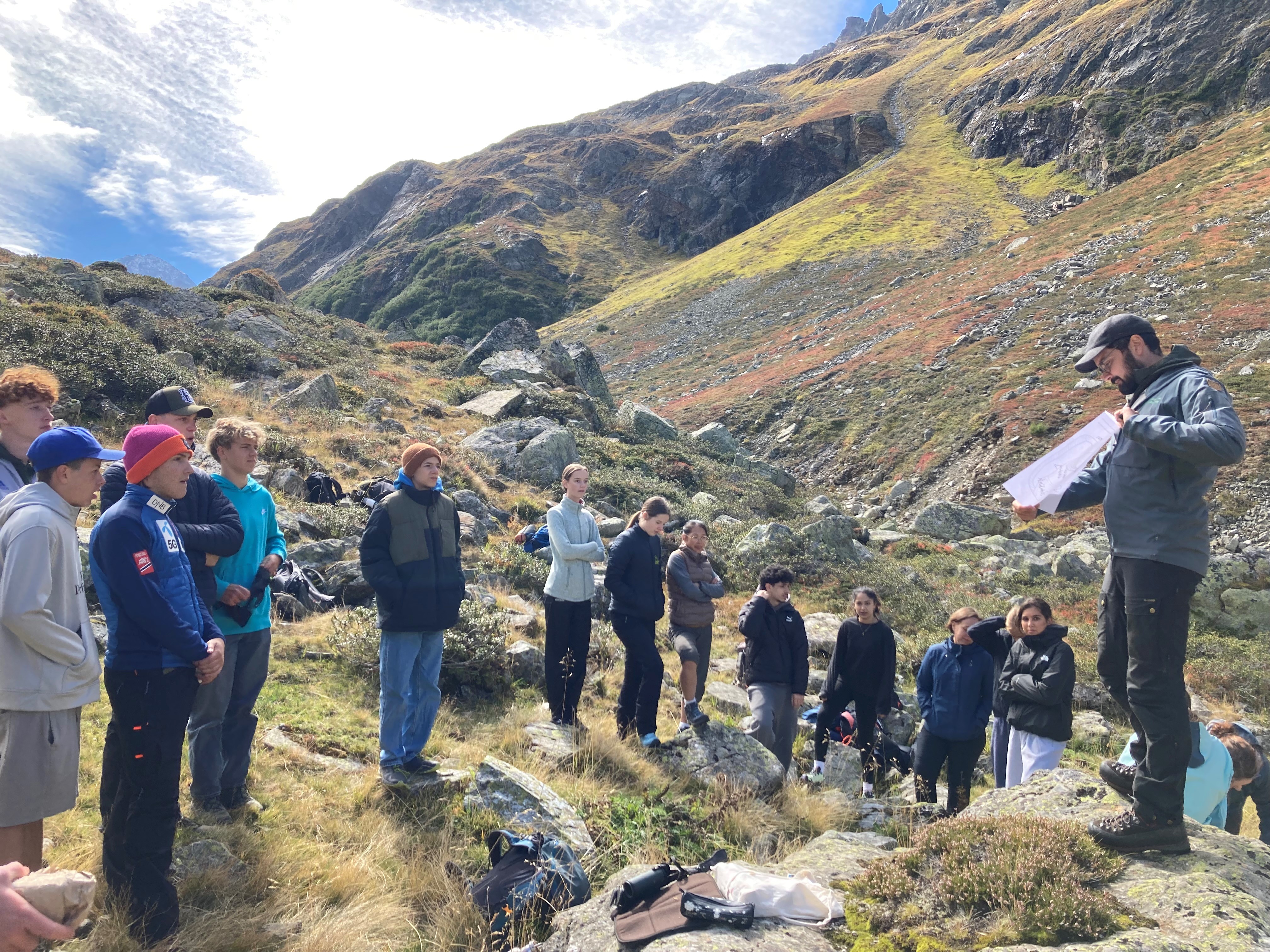 Am Mittwoch, dem 17. September, starteten die 6. Klassen motiviert den Anstieg von der Bielerhöhe (2071 m) zur Wiesbadner Hütte (2443 m). Begleitet wurden sie von den Klassenvorständen, den Projektkoordinatoren Herrn Prof. Christian Jandorek und Herrn Prof. Gabriel Stoll sowie dem Vegetationsexperten Christian Kuehs vom Regionsmanagement für das Natura-2000-Gebiet Verwall. Während des Aufstiegs widmeten sich die Schülerinnen und Schüler einer Gruppenarbeit über die regionale Flora und Fauna und hörten anschließend noch einen Vortrag des Experten zu diesem Thema.