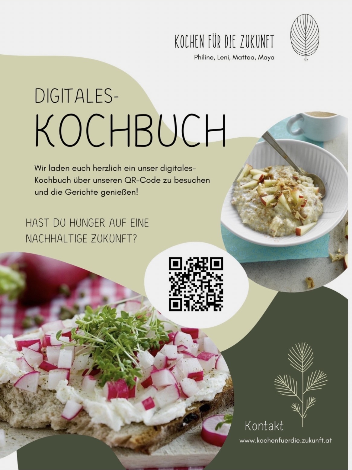 Im Rahmen des k.i.d.z.21 Projekts hat unsere Gruppe ein Kochbuch mit saisonalen, regionalen und nachhaltigen Rezepten kreiert. Es enthält einfache Rezepte für verschiedene Gerichte, sowie Information darüber, warum regionale und saisonale Lebensmittel wichtig für Klima und Umwelt sind. Damit möchten wir Kinder und junge Familien inspirieren, bewusster einzukaufen und nachhaltiger zu kochen.