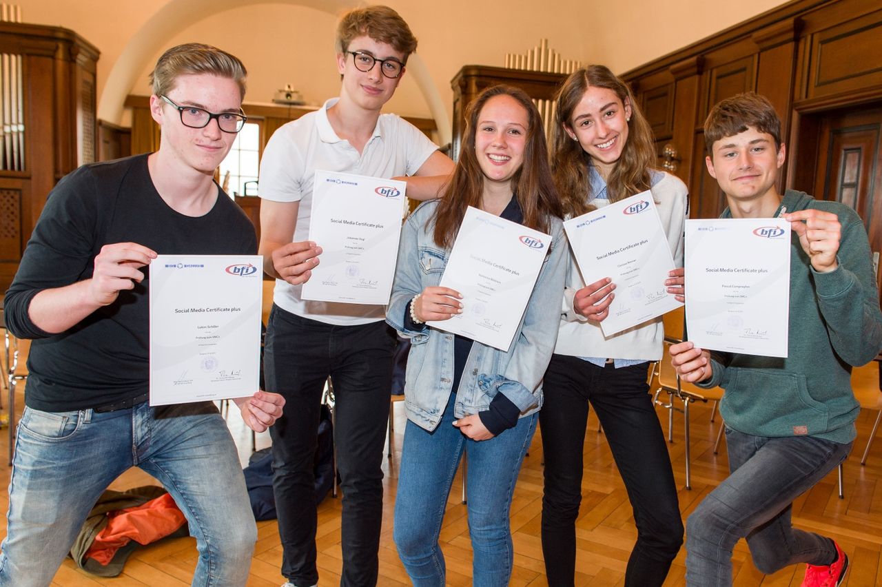 feierlich überreicht. Der SMC+ ist eine Kooperation von AK / BFI Vorarlberg und den AHS, das unsere medial vernetzen SchülerInnen für die soziale, rechtliche und jugendkulturelle Dimension der neuen Medien ausbilden und sensibilisieren soll. Der SMC+ soll an Schulen als Meilenstein in der Medienpädagogik etabliert werden, indem die SchülerInnen im Unterrichtsfach Informatik in medienrechtlichen Problemfeldern geschult werden und im Anschluss daran dieses Zertifikat erwerben.