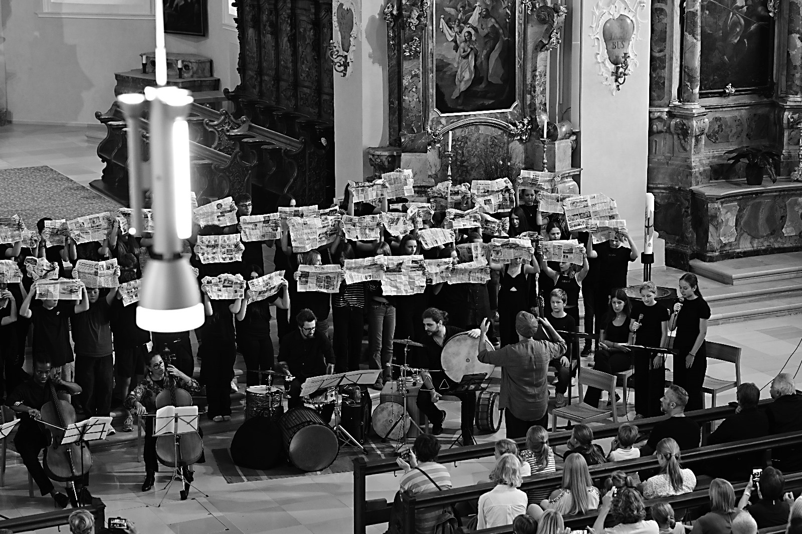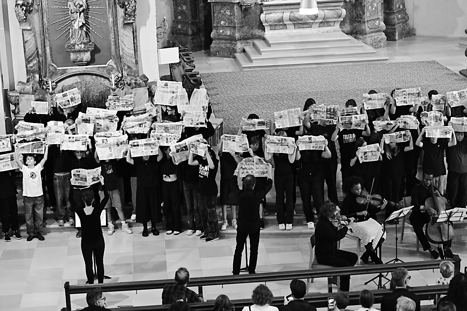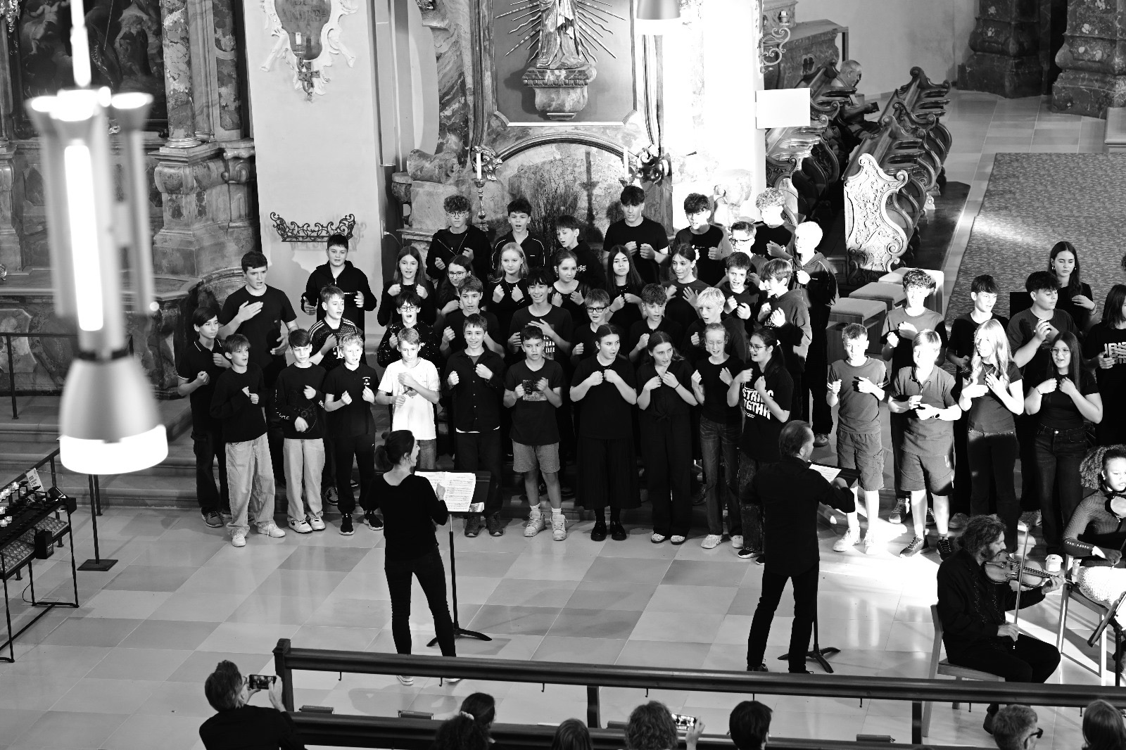 Somnia pacis - 120 SchülerInnen der 4. Klassen führen vor großem Publikum ein Musikprojekt von Andreas Paragioudakis in der Pfarrkirche St. Gallus auf