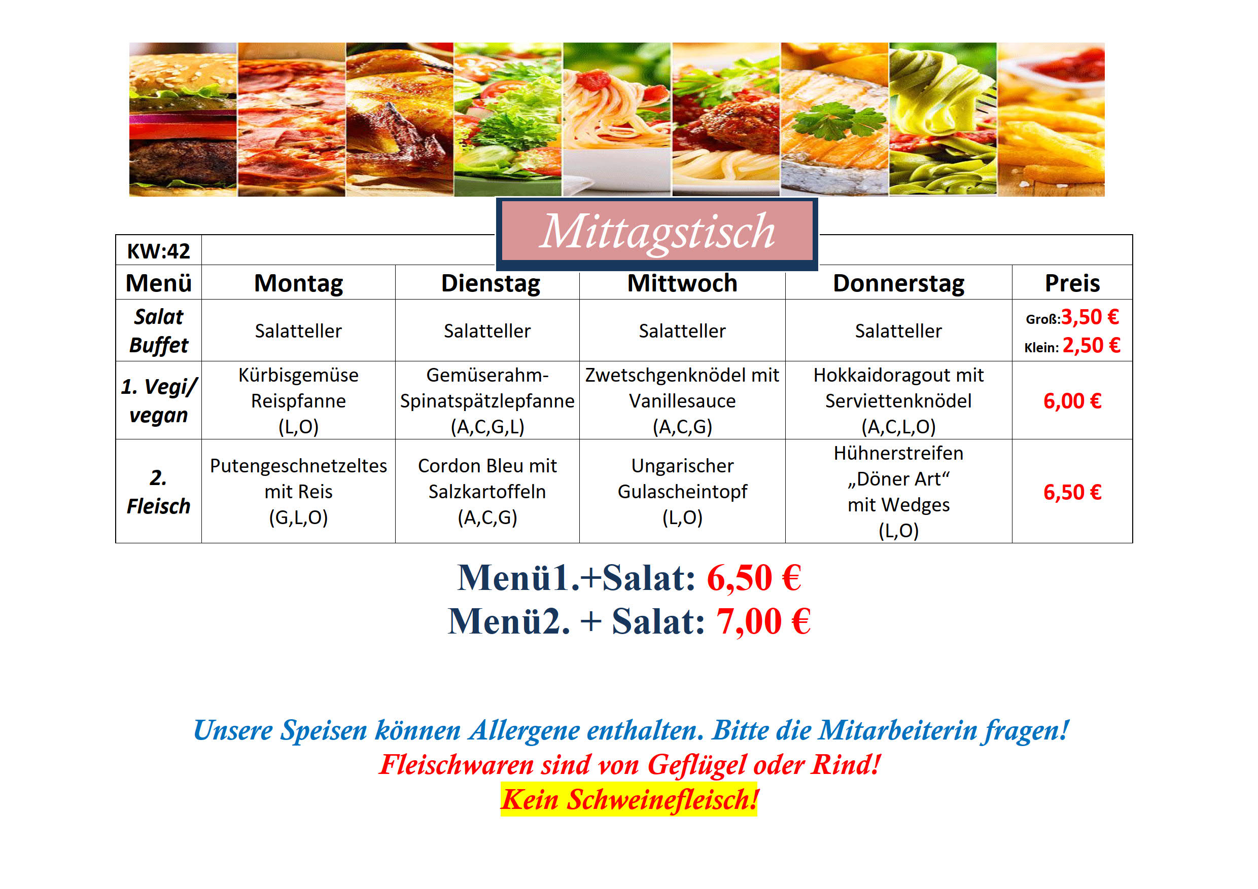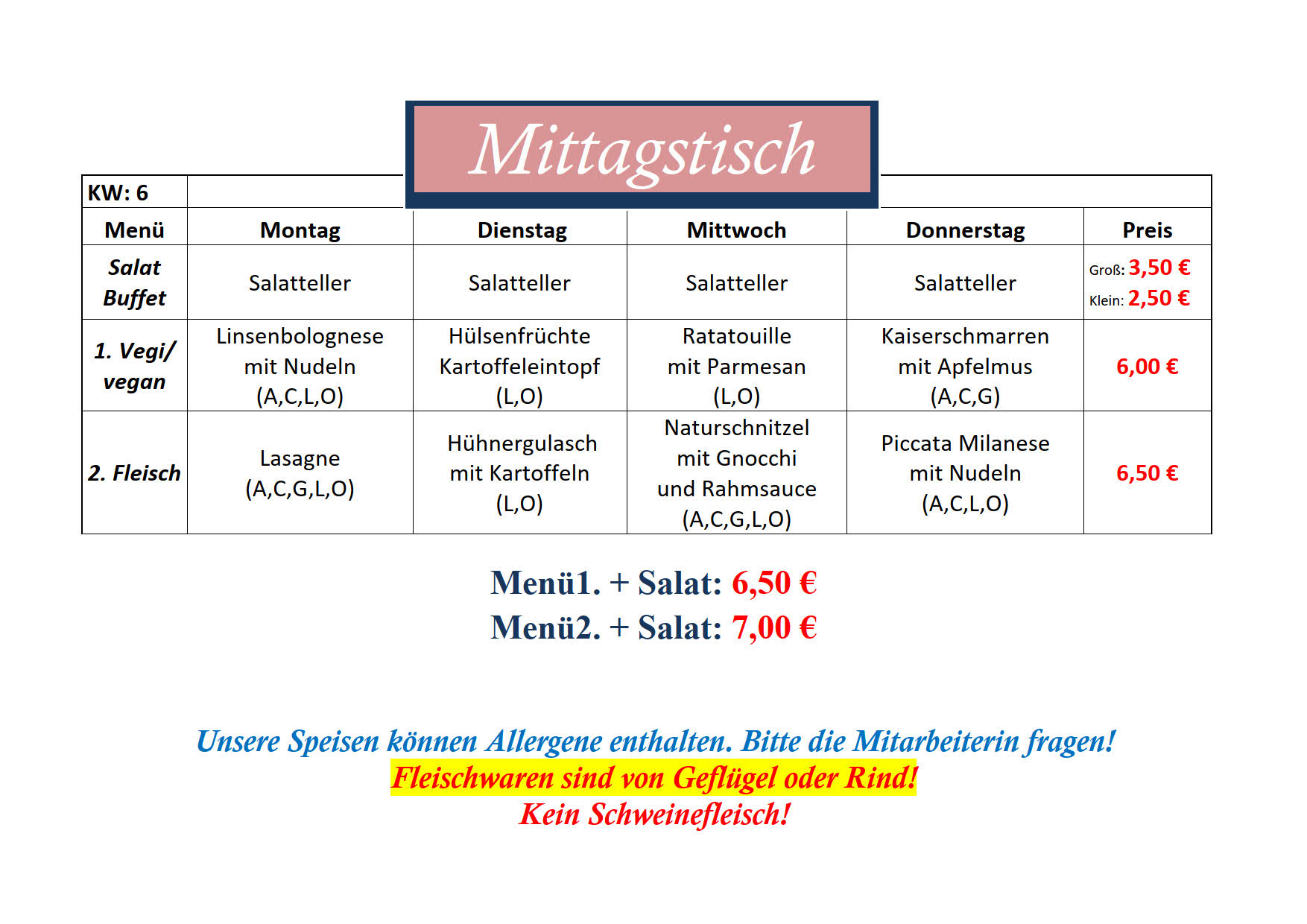 Zur Jause bietet die Kantine unter anderem folgendes Angebot:
