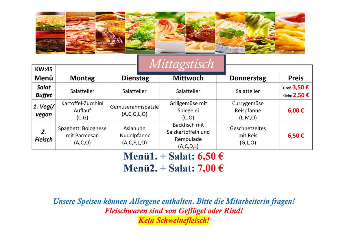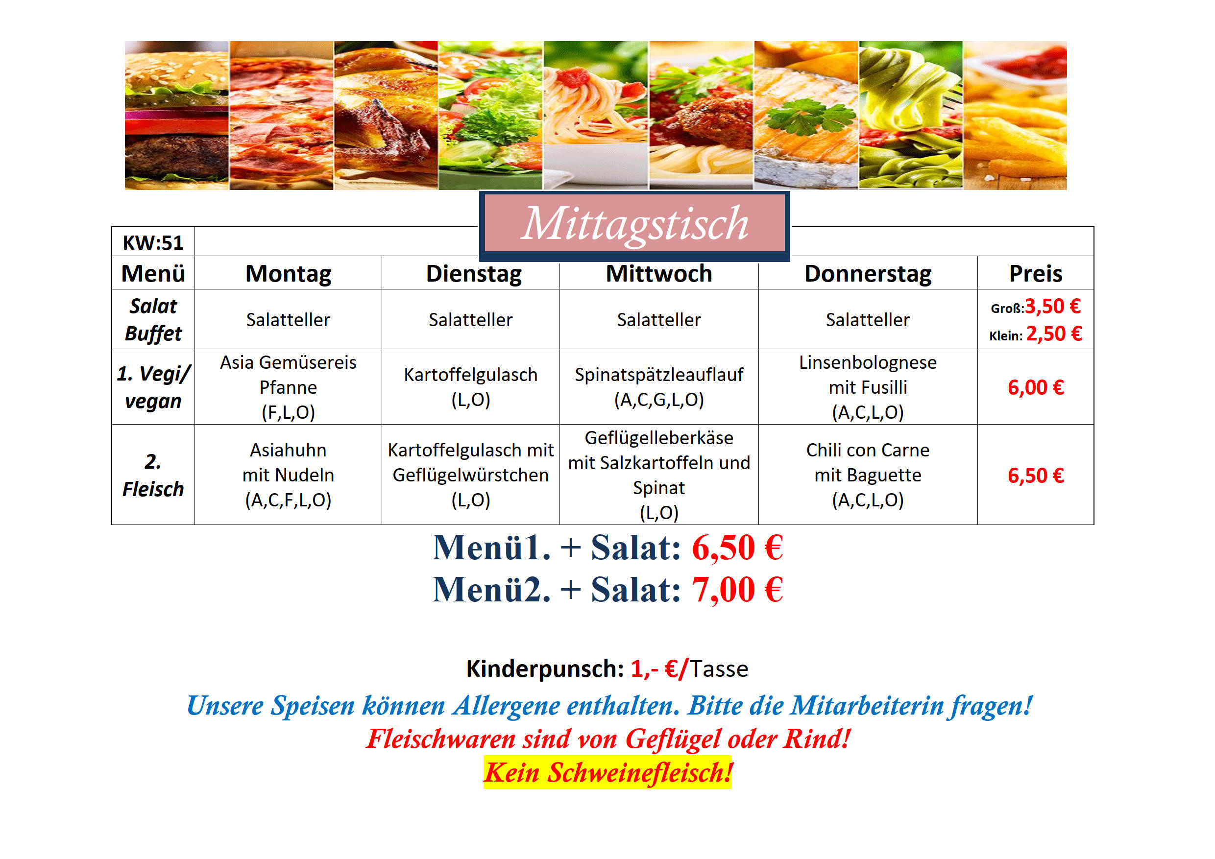 Zur Jause bietet die Kantine unter anderem folgendes Angebot: