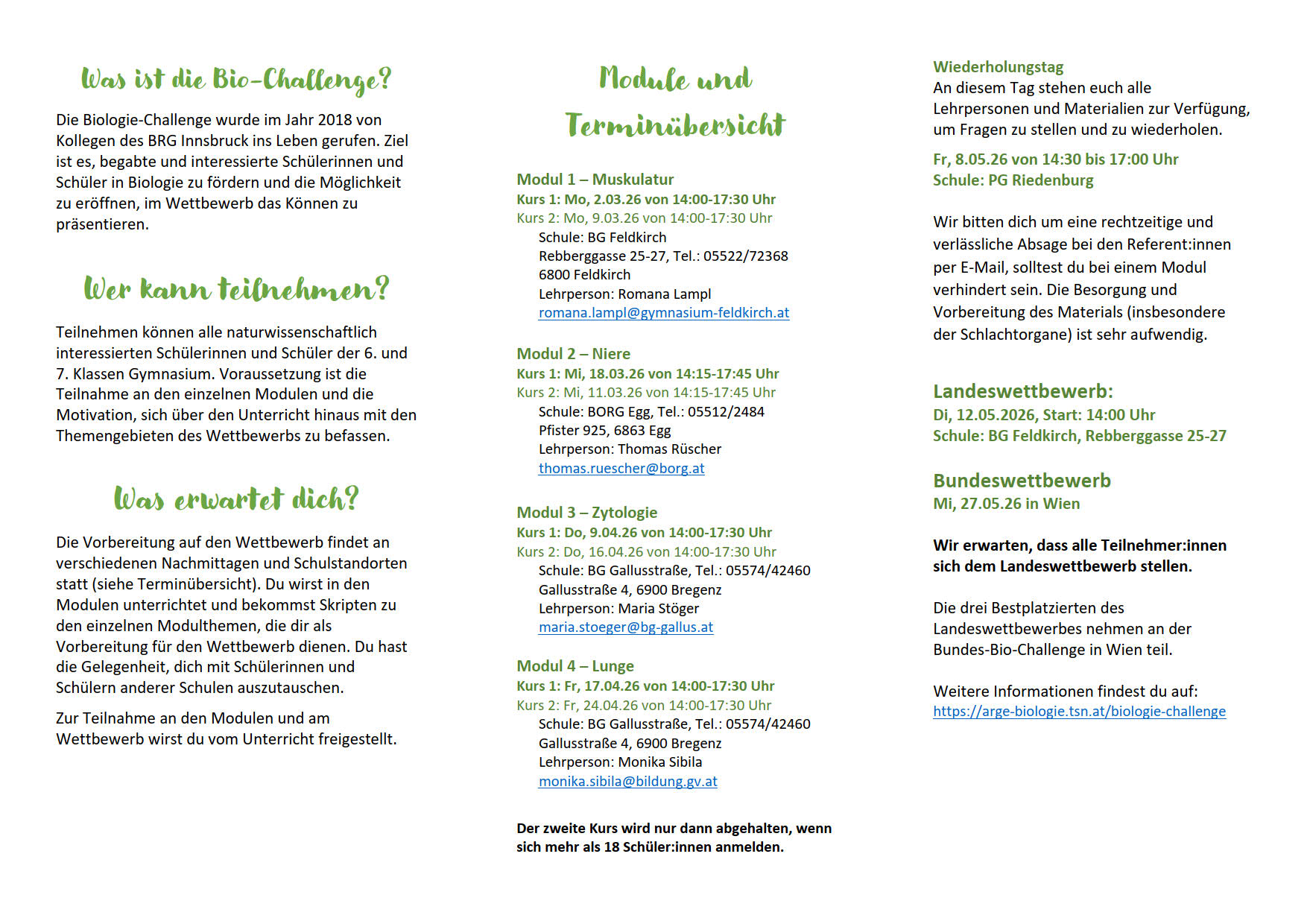 BIO-CHALLENGE INFOS FÜR 2025-26