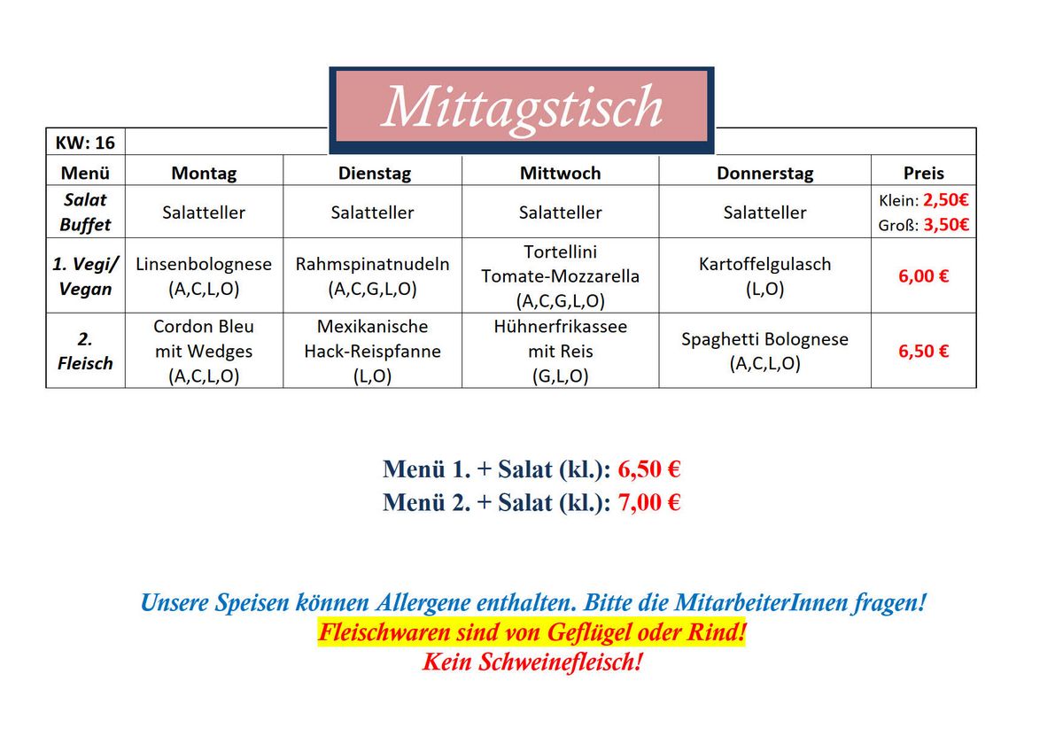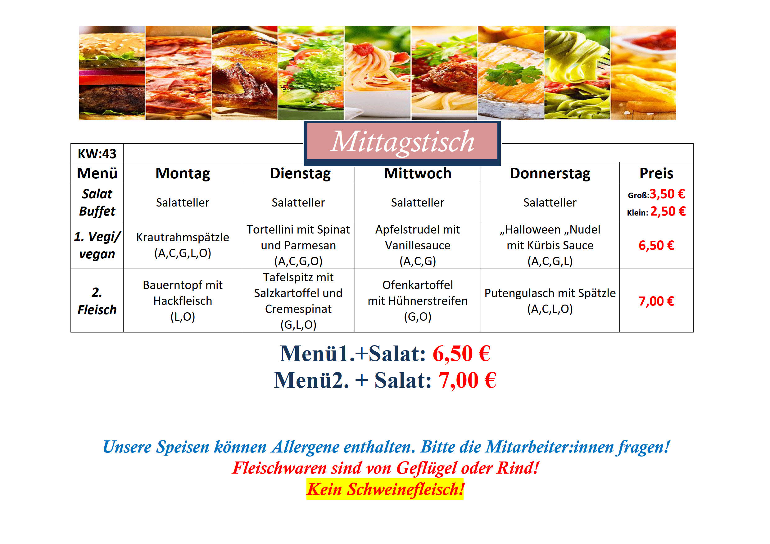 Zur Jause bietet die Kantine unter anderem folgendes Angebot: