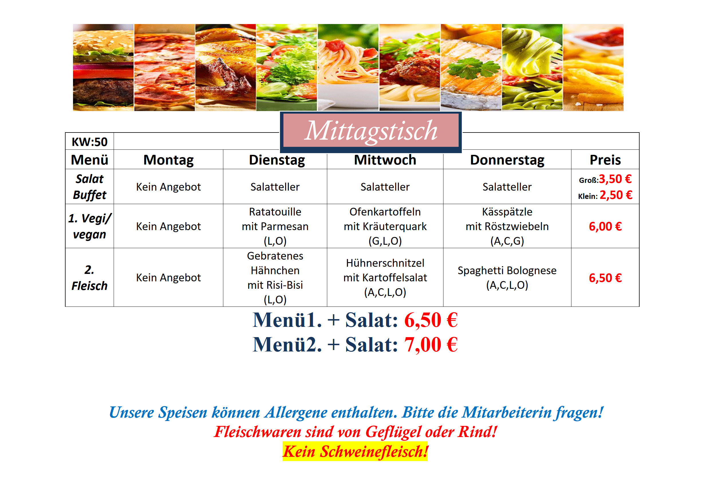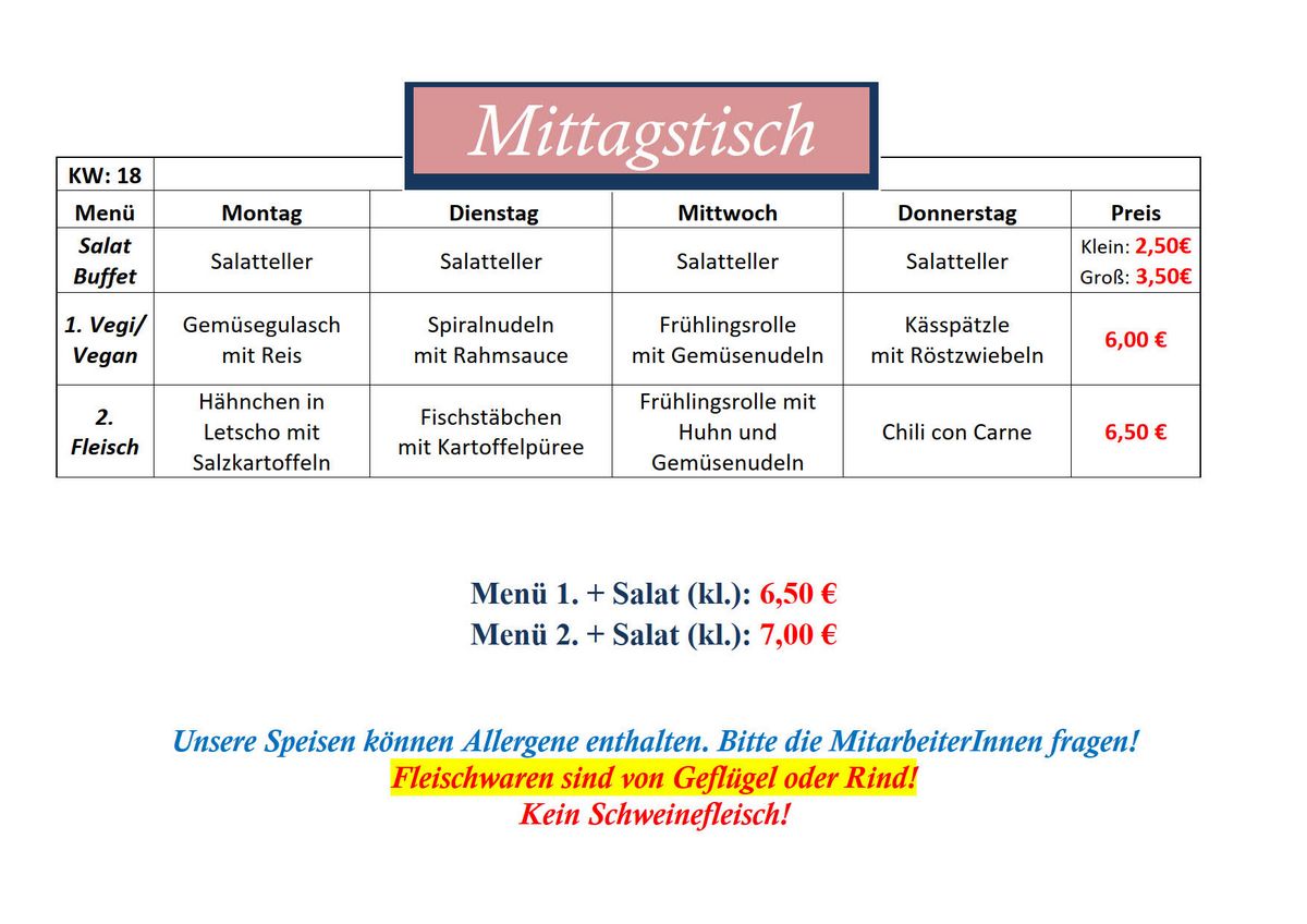 Zur Jause bietet die Kantine unter anderem folgendes Angebot: